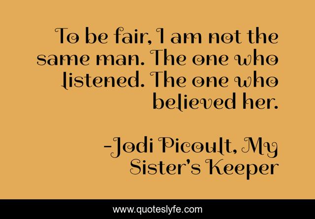 This page presents the quote "To be fair, I am not the same man. The one who listened. The one who believed her.". Author of this quote is Jodi Picoult, My Sister's Keeper. .