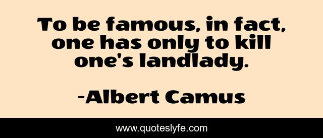 This page presents the quote "To be famous, in fact, one has only to kill one's landlady.". Author of this quote is Albert Camus. This quote is about only, in fact, fact,.