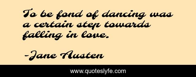 This page presents the quote "To be fond of dancing was a certain step towards falling in love.". Author of this quote is Jane Austen. This quote is about falling in love, step,.