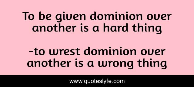 "to wrest dominion over another is a wrong thing Quotes." Quoteslyfe.com, 2025. Fri. 05 Dec. 2025. <https://www.quoteslyfe.com/quote/To-be-given-dominion-over-another-is-54330>.
