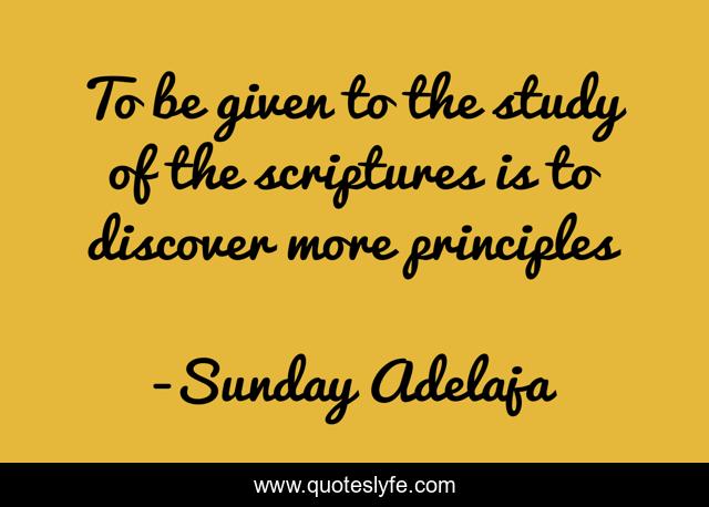 This page presents the quote "To be given to the study of the scriptures is to discover more principles". Author of this quote is Sunday Adelaja. This quote is about study, discover, scriptures, principles,.
