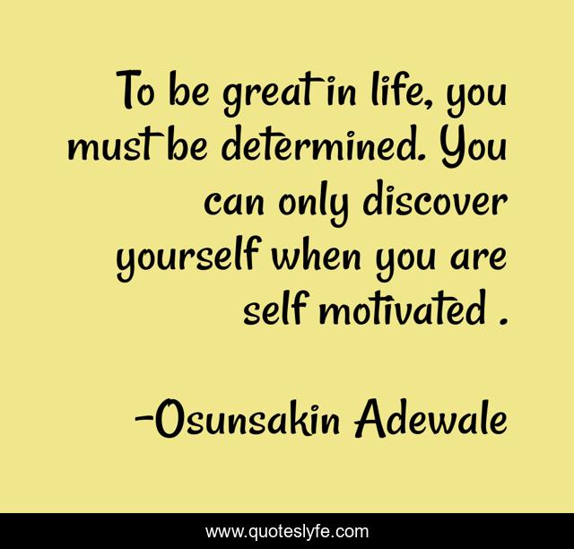 This page presents the quote "To be great in life, you must be determined. You can only discover yourself when you are self motivated .". Author of this quote is Osunsakin Adewale. .