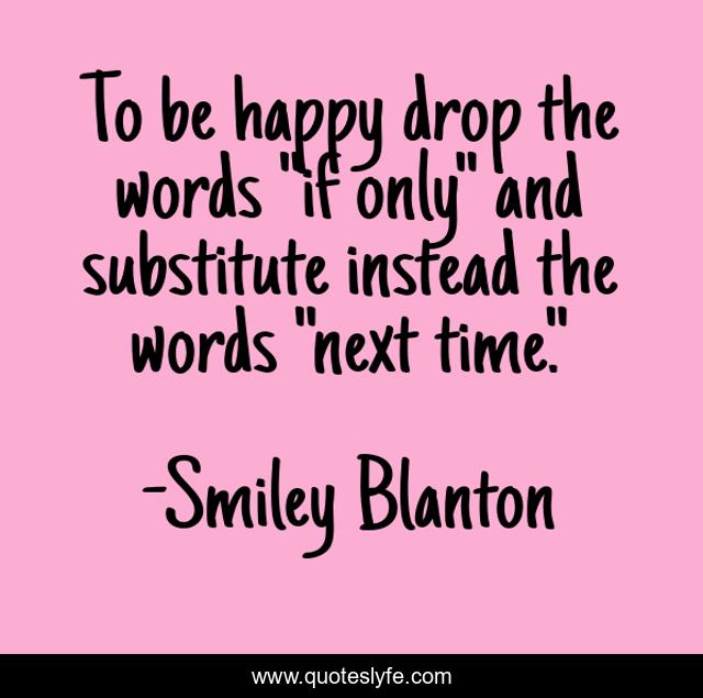 This page presents the quote "To be happy drop the words "if only" and substitute instead the words "next time."". Author of this quote is Smiley Blanton. .