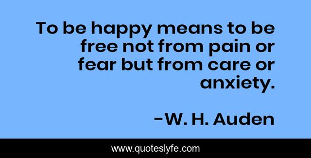This page presents the quote "To be happy means to be free not from pain or fear but from care or anxiety.". Author of this quote is W. H. Auden. .