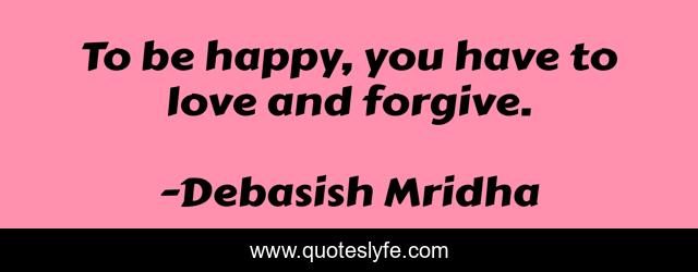 This page presents the quote "To be happy, you have to love and forgive.". Author of this quote is Debasish Mridha. This quote is about happy, life, love, knowledge, inspirational, intelligence, philosophy, forgive, wisdom,.
