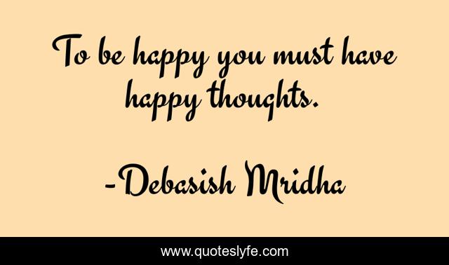 This page presents the quote "To be happy you must have happy thoughts.". Author of this quote is Debasish Mridha. This quote is about to-be-happy, happy-thoughts, philosophy, debasish-mridha, quotes, inspirational, enthusiasm, debasish-mridha-m-d, happiness,.