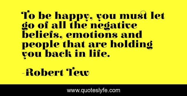 This page presents the quote "To be happy, you must let go of all the negative beliefs, emotions and people that are holding you back in life.". Author of this quote is Robert Tew. This quote is about happy, negative, happiness, emotions,.