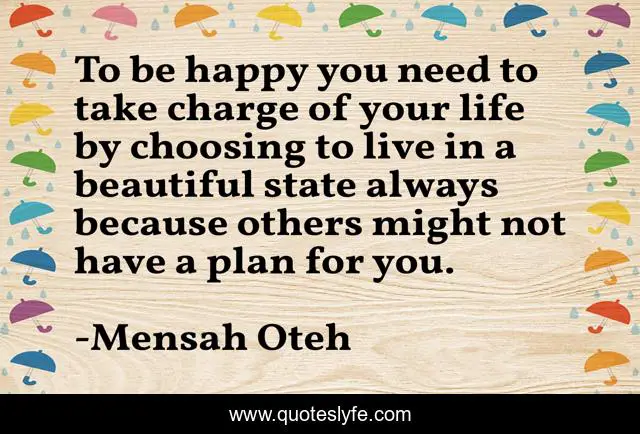 To be happy you need to take charge of your life by choosing to live in a beautiful state always because others might not have a plan for you.