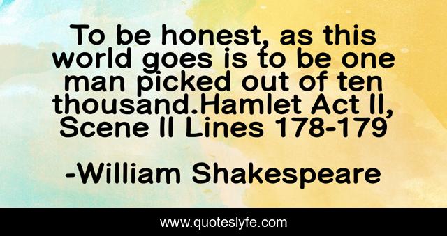 This page presents the quote "To be honest, as this world goes is to be one man picked out of ten thousand.Hamlet Act II, Scene II Lines 178-179". Author of this quote is William Shakespeare. This quote is about honesty, shakespeare,.