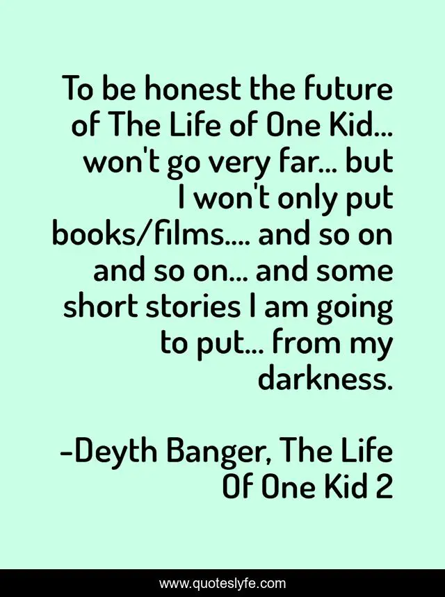 This page presents the quote "To be honest the future of The Life of One Kid... won't go very far... but I won't only put books/films.... and so on and so on... and some short stories I am going to put... from my darkness.". Author of this quote is Deyth Banger, The Life Of One Kid 2. This quote is about life, pattern, soon, book, series, deyth,.
