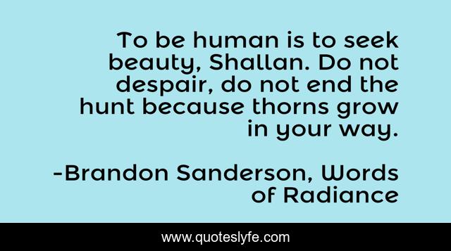 To be human is to seek beauty, Shallan. Do not despair, do not end the hunt because thorns grow in your way.