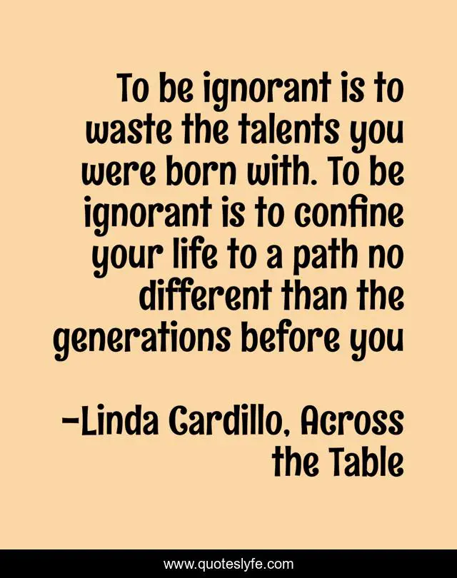 "Linda Cardillo, Across the Table Quotes." Quoteslyfe.com, 2025. Mon. 08 Dec. 2025. <https://www.quoteslyfe.com/quote/To-be-ignorant-is-to-waste-the-34341>.