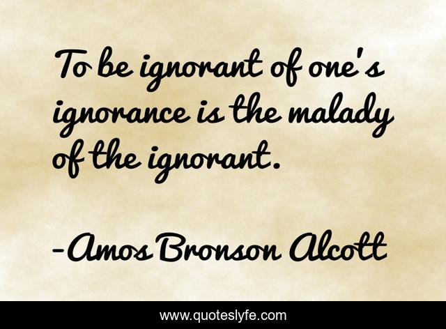 This page presents the quote "To be ignorant of one's ignorance is the malady of the ignorant.". Author of this quote is Amos Bronson Alcott. .