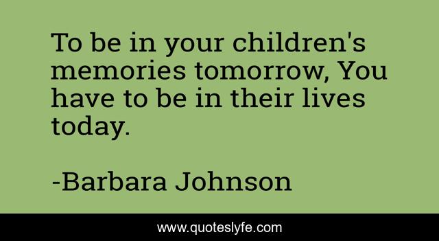 This page presents the quote "To be in your children's memories tomorrow, You have to be in their lives today.". Author of this quote is Barbara Johnson. This quote is about parenting, inspirational, enthusiasm,.