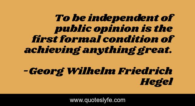 "Georg Wilhelm Friedrich Hegel Quotes." Quoteslyfe.com, 2025. Mon. 08 Dec. 2025. <https://www.quoteslyfe.com/quote/To-be-independent-of-public-opinion-is-31992>.