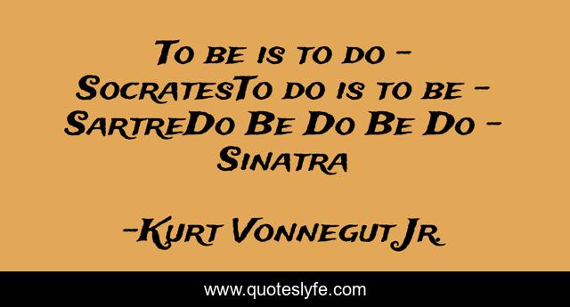 This page presents the quote "To be is to do - SocratesTo do is to be - SartreDo Be Do Be Do - Sinatra". Author of this quote is Kurt Vonnegut Jr.. .