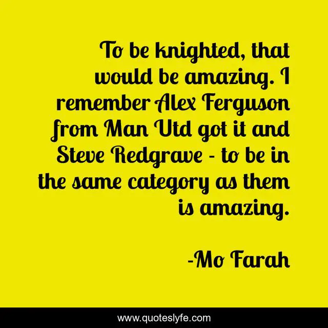 This page presents the quote "To be knighted, that would be amazing. I remember Alex Ferguson from Man Utd got it and Steve Redgrave - to be in the same category as them is amazing.". Author of this quote is Mo Farah. This quote is about remember, same, man,.