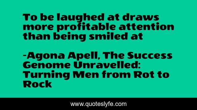 "Agona Apell, The Success Genome Unravelled: Turning Men from Rot to Rock Quotes." Quoteslyfe.com, 2025. Fri. 05 Dec. 2025. <https://www.quoteslyfe.com/quote/To-be-laughed-at-draws-more-profitable-109028>.