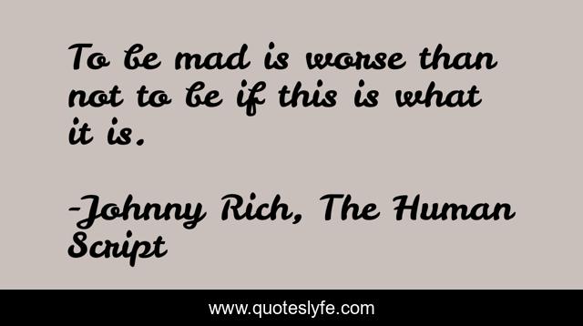 "Johnny Rich, The Human Script Quotes." Quoteslyfe.com, 2025. Mon. 08 Dec. 2025. <https://www.quoteslyfe.com/quote/To-be-mad-is-worse-than-not-144656>.