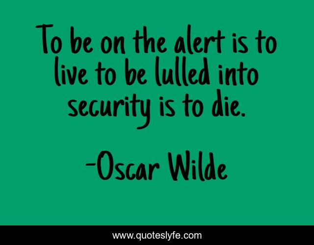 This page presents the quote "To be on the alert is to live to be lulled into security is to die.". Author of this quote is Oscar Wilde. .