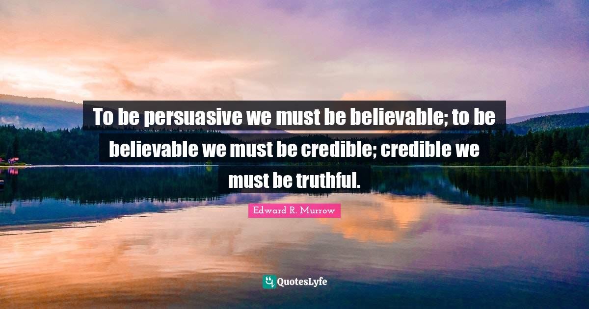 "Edward R. Murrow Quotes." Quoteslyfe.com, 2026. Wed. 14 Jan. 2026. <https://www.quoteslyfe.com/quote/To-be-persuasive-we-must-be-believable-545885>.