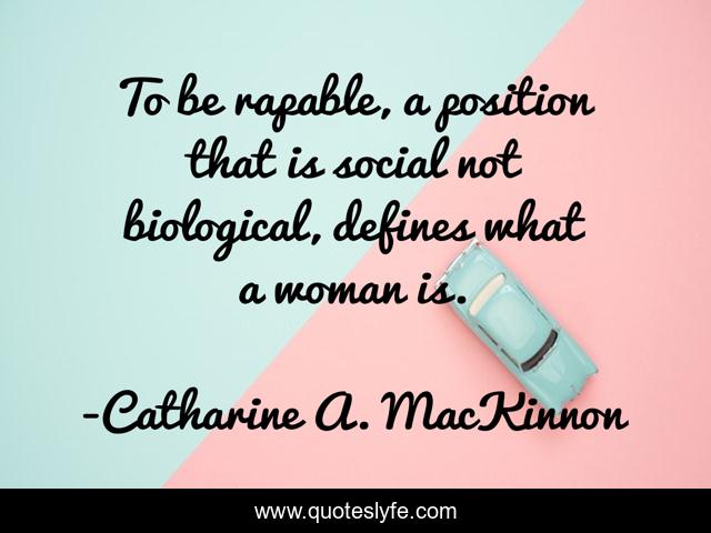 This page presents the quote "To be rapable, a position that is social not biological, defines what a woman is.". Author of this quote is Catharine A. MacKinnon. .
