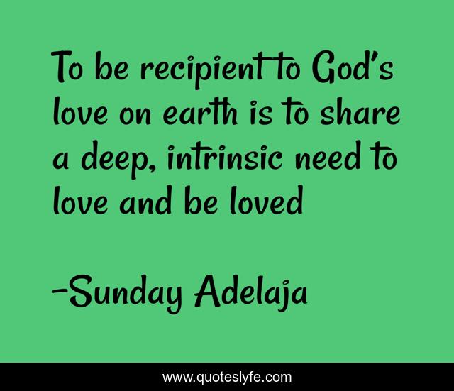 This page presents the quote "To be recipient to God’s love on earth is to share a deep, intrinsic need to love and be loved". Author of this quote is Sunday Adelaja. This quote is about love, deep, love-of-god, need, earth, affection,.