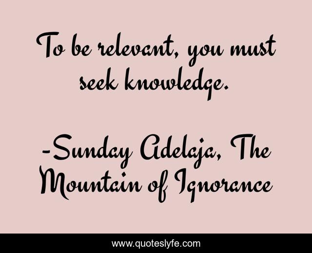 "Sunday Adelaja, The Mountain of Ignorance Quotes." Quoteslyfe.com, 2025. Sun. 07 Dec. 2025. <https://www.quoteslyfe.com/quote/To-be-relevant-you-must-seek-knowledge-51466>.