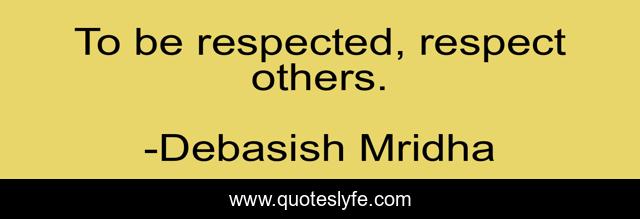 "Debasish Mridha Quotes." Quoteslyfe.com, 2025. Mon. 08 Dec. 2025. <https://www.quoteslyfe.com/quote/To-be-respected-respect-others-74707>.