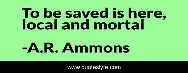 This page presents the quote "To be saved is here, local and mortal". Author of this quote is A.R. Ammons. This quote is about redemption, inspiration,.