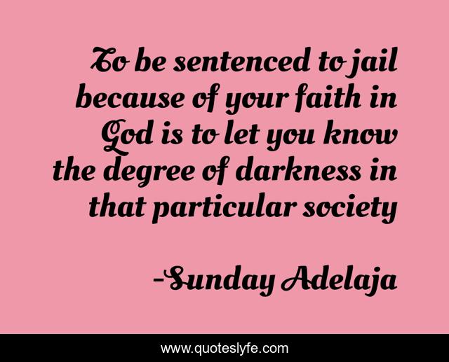 This page presents the quote "To be sentenced to jail because of your faith in God is to let you know the degree of darkness in that particular society". Author of this quote is Sunday Adelaja. This quote is about sentenced, faith, jail,.