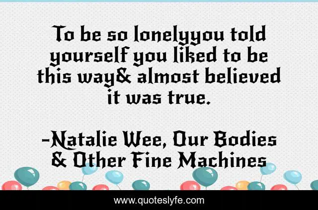 "Natalie Wee, Our Bodies & Other Fine Machines Quotes." Quoteslyfe.com, 2025. Fri. 05 Dec. 2025. <https://www.quoteslyfe.com/quote/To-be-so-lonelyyou-told-yourself-you-138916>.