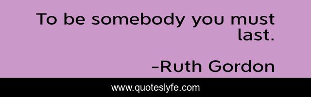 This page presents the quote "To be somebody you must last.". Author of this quote is Ruth Gordon. This quote is about celebrities, fame,.