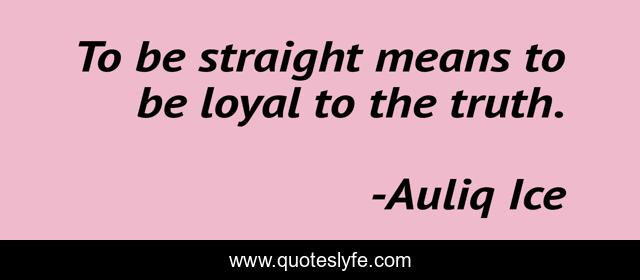 This page presents the quote "To be straight means to be loyal to the truth.". Author of this quote is Auliq Ice. This quote is about loyality, liars, telling-the-truth, loyalty, truth, truth-and-lies,.