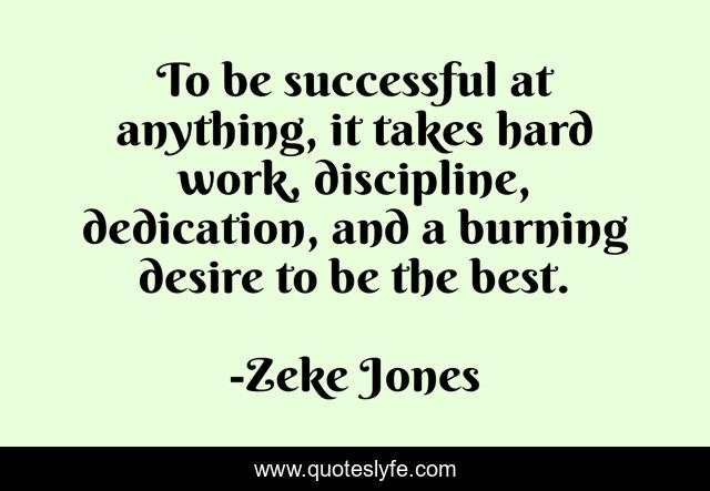 This page presents the quote "To be successful at anything, it takes hard work, discipline, dedication, and a burning desire to be the best.". Author of this quote is Zeke Jones. .