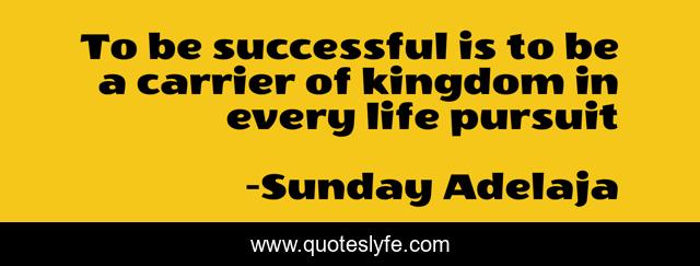 This page presents the quote "To be successful is to be a carrier of kingdom in every life pursuit". Author of this quote is Sunday Adelaja. This quote is about kingdom, successful, life, carrier, pursuit,.