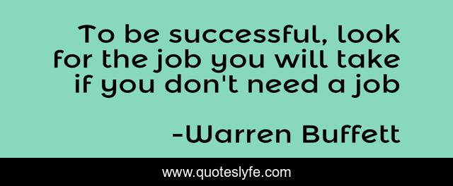 This page presents the quote "To be successful, look for the job you will take if you don't need a job". Author of this quote is Warren Buffett. This quote is about career, job, work, happiness, success,.