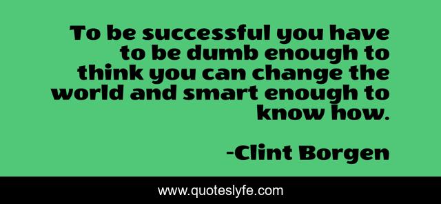 This page presents the quote "To be successful you have to be dumb enough to think you can change the world and smart enough to know how.". Author of this quote is Clint Borgen. This quote is about victory, success, winning,.
