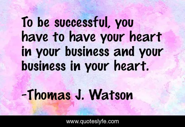 This page presents the quote "To be successful, you have to have your heart in your business and your business in your heart.". Author of this quote is Thomas J. Watson. This quote is about successful, heart, success,.