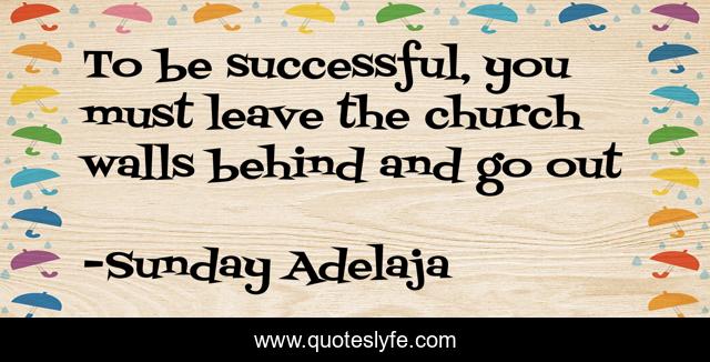 This page presents the quote "To be successful, you must leave the church walls behind and go out". Author of this quote is Sunday Adelaja. This quote is about leave, successful, walls, church,.