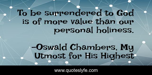 This page presents the quote "To be surrendered to God is of more value than our personal holiness.". Author of this quote is Oswald Chambers, My Utmost for His Highest. .