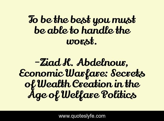 This page presents the quote "To be the best you must be able to handle the worst.". Author of this quote is Ziad K. Abdelnour, Economic Warfare: Secrets of Wealth Creation in the Age of Welfare Politics. This quote is about worst, best,.
