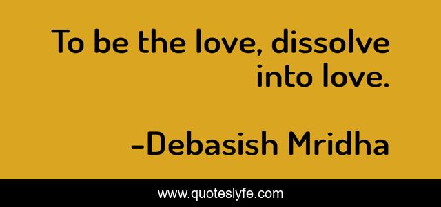 This page presents the quote "To be the love, dissolve into love.". Author of this quote is Debasish Mridha. This quote is about be-the-love, dissolve-into-love, love, philosophy, debasish-mridha, quotes, inspirational, enthusiasm, debasish-mridha-m-d,.