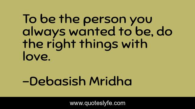 This page presents the quote "To be the person you always wanted to be, do the right things with love.". Author of this quote is Debasish Mridha. This quote is about miraboli, oscar-wilde, philosophy, debasish-mridha, tagore, quotes, buddha, debasish-mridha-md, inspirational,.