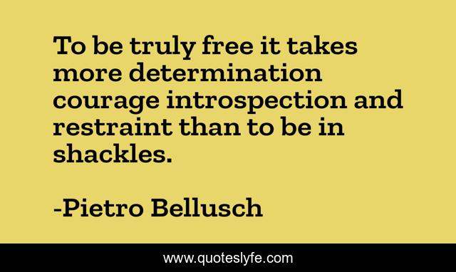This page presents the quote "To be truly free it takes more determination courage introspection and restraint than to be in shackles.". Author of this quote is Pietro Bellusch. This quote is about liberty, human, rights,.