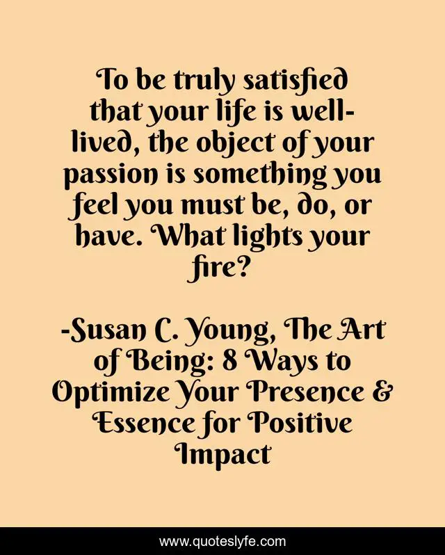 "Susan C. Young, The Art of Being: 8 Ways to Optimize Your Presence & Essence for Positive Impact Quotes." Quoteslyfe.com, 2025. Mon. 08 Dec. 2025. <https://www.quoteslyfe.com/quote/To-be-truly-satisfied-that-your-life-92377>.