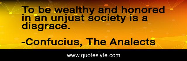 This page presents the quote "To be wealthy and honored in an unjust society is a disgrace.". Author of this quote is Confucius, The Analects. This quote is about justice, society, disgrace, honor, wealth,.