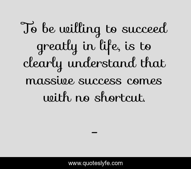 This page presents the quote "To be willing to succeed greatly in life, is to clearly understand that massive success comes with no shortcut.". Author of this quote is . This quote is about massive-success, edmond-mbiaka, understanding-success, succeeding-in-life, shortcut, no-shortcut-to-success, achieving-success,.