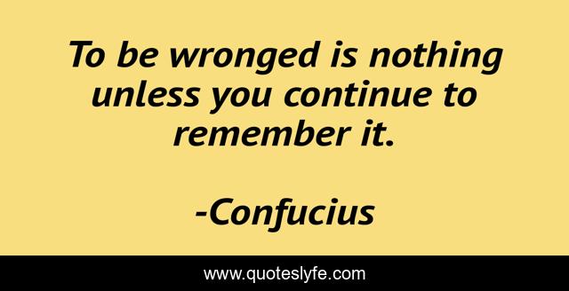 This page presents the quote "To be wronged is nothing unless you continue to remember it.". Author of this quote is Confucius. .