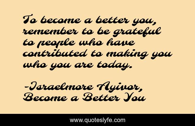 "Israelmore Ayivor, Become a Better You Quotes." Quoteslyfe.com, 2025. Mon. 08 Dec. 2025. <https://www.quoteslyfe.com/quote/To-become-a-better-you-remember-to-36708>.